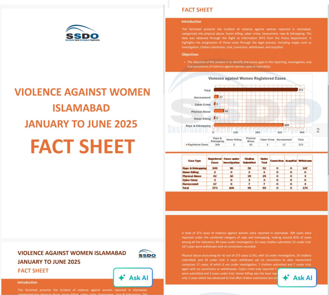 Syed Kausar Abbas, Executive Director of SSDO, expressed deep concern over the findings, stating, “It is alarming that despite hundreds of cases being reported, not a single conviction has been achieved in Islamabad. This clearly reflects systemic weaknesses that deny justice to survivors.”