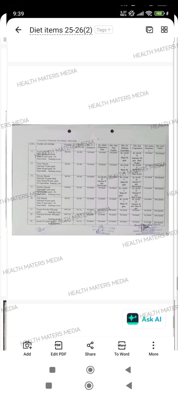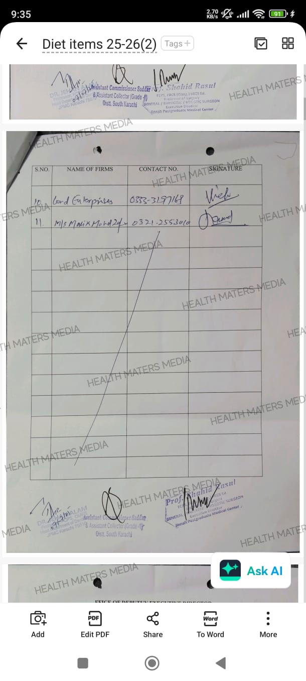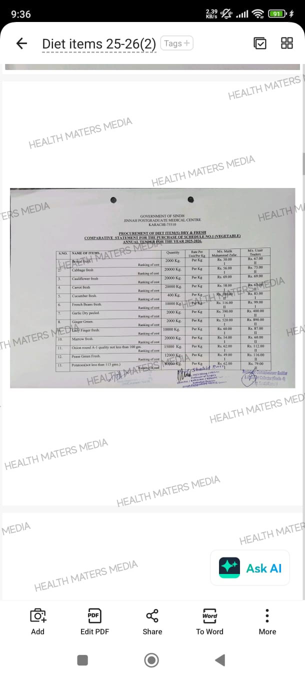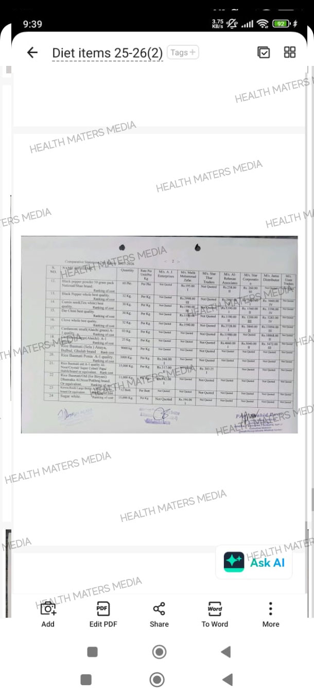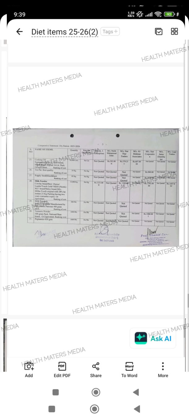 In addition, the Head of the Diet Section, Deputy Director Dr. Adeel Samoo, who oversees diet procurement, has also come under scrutiny for failing to prevent irregularities and ensure transparent evaluation of bids.