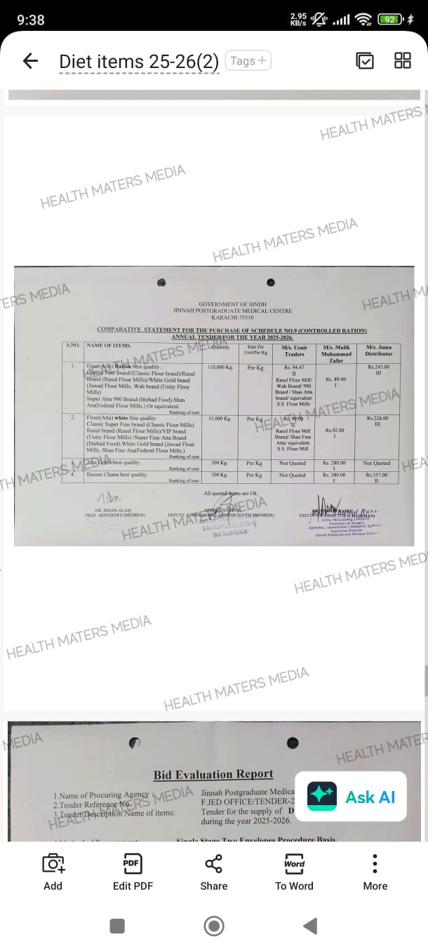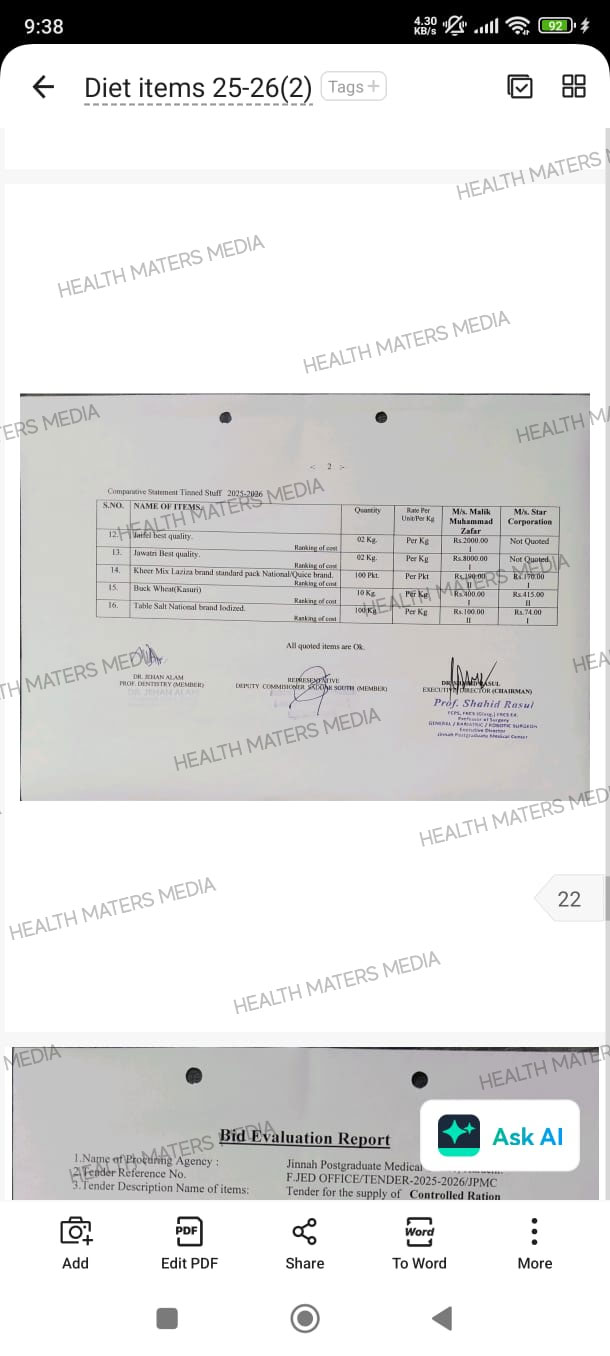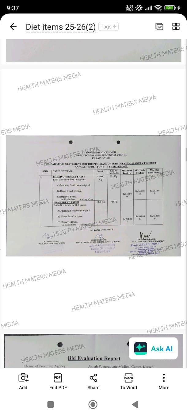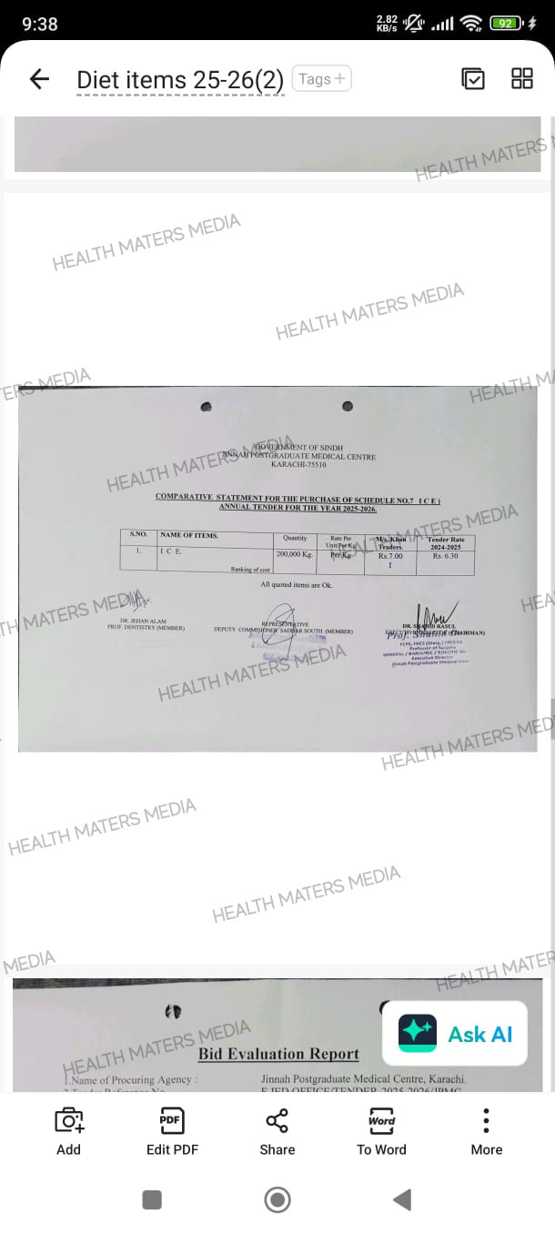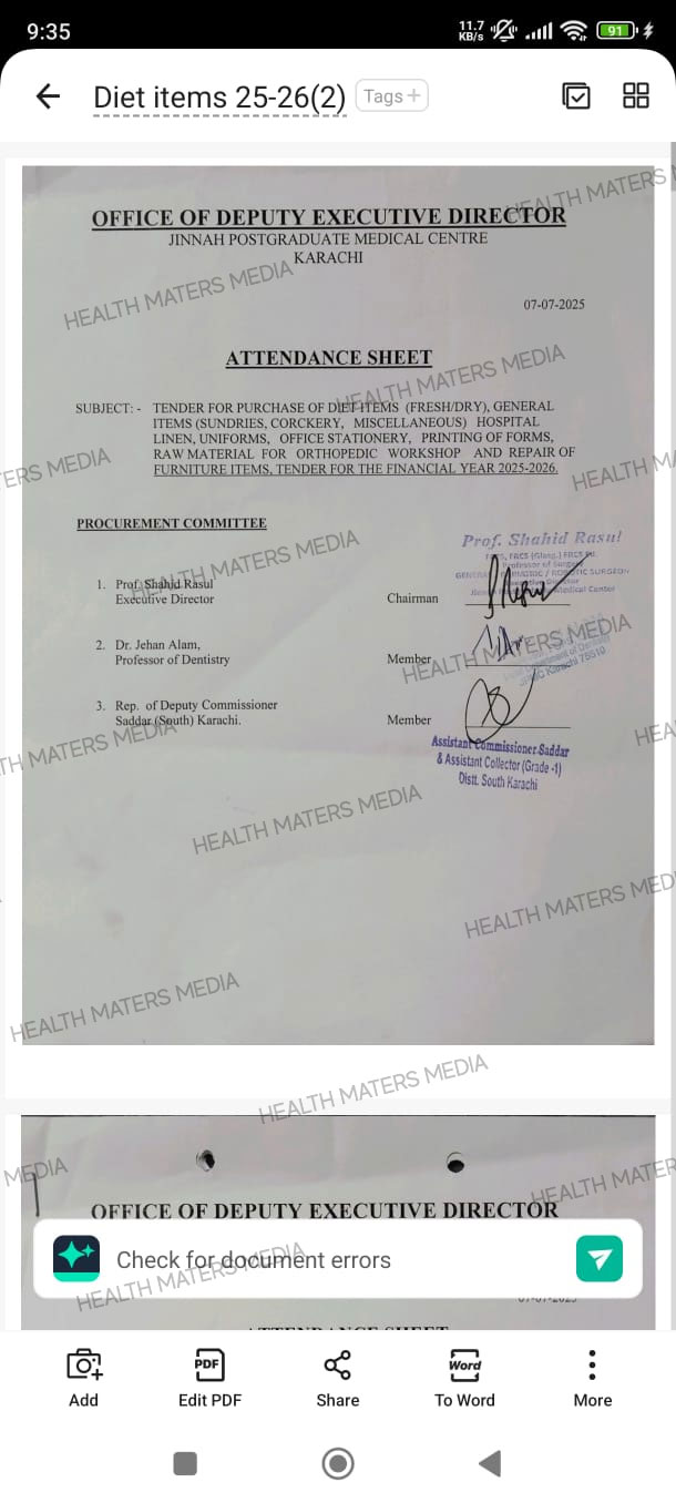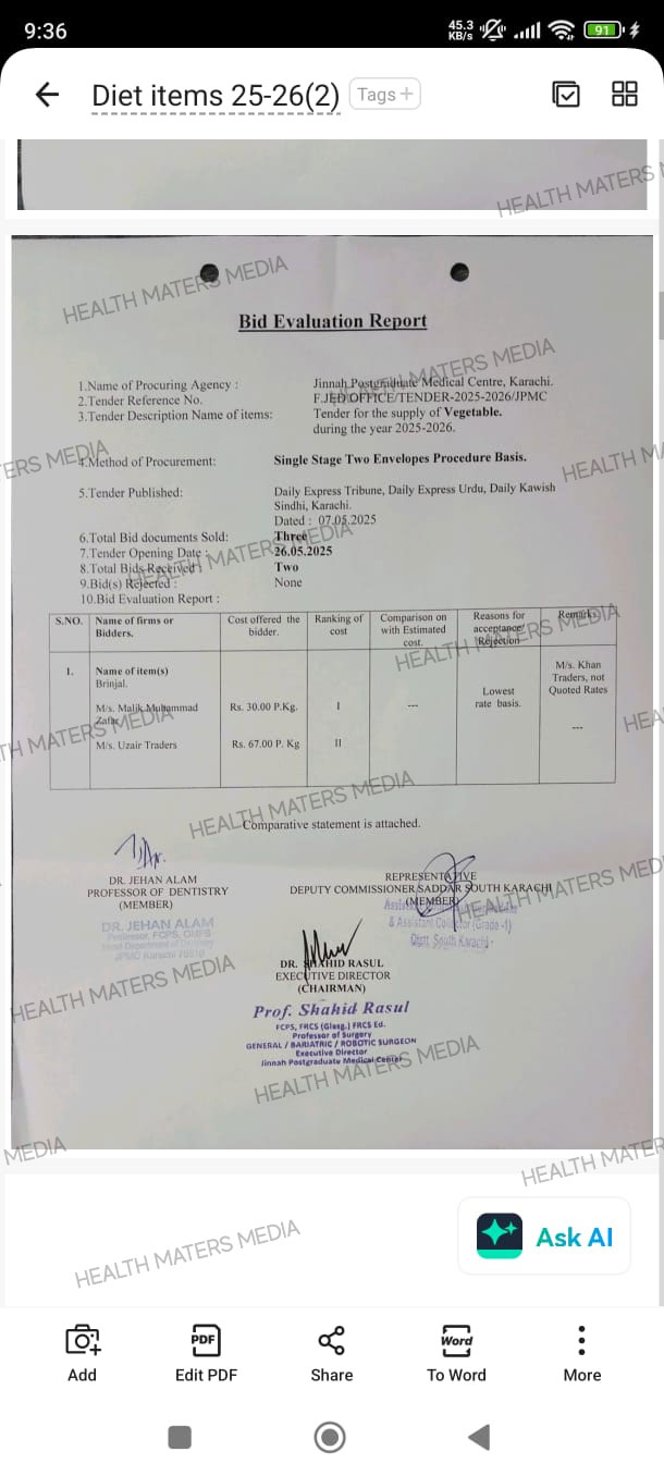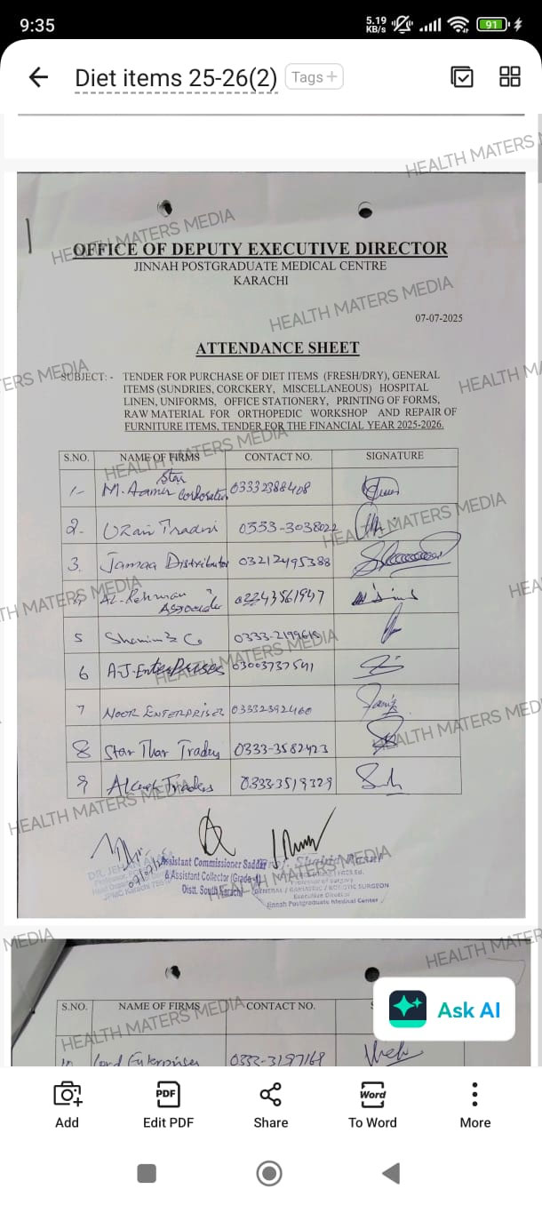 KARACHI: A major procurement scandal has emerged at Jinnah Postgraduate Medical Centre (JPMC), Karachi, where Khan Traders — absent from the official tender session — was still awarded contracts worth billions of rupees for patients’ diet supplies. The awards were granted on single bids, in direct violation of Sindh Public Procurement Authority (SPPRA) rules and amid allegations of favoritism.