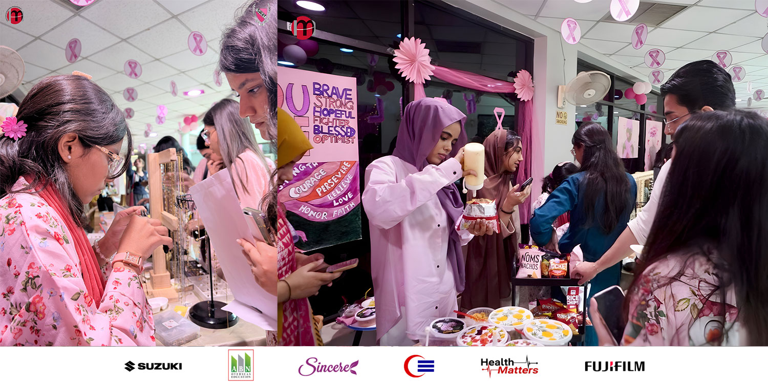 After the session, the Pinktober Emporium at the Student Activity Center welcomed around 2,500 students. The Emporium doubled as a fundraising and awareness platform, hosting creative stalls from Haath Hunar, Stitch & Carry, Chrysanthemums Beads, Cravory, Pink, Book Central, Permablings, Case On, and Gemporium—each contributing artfully to the cause.