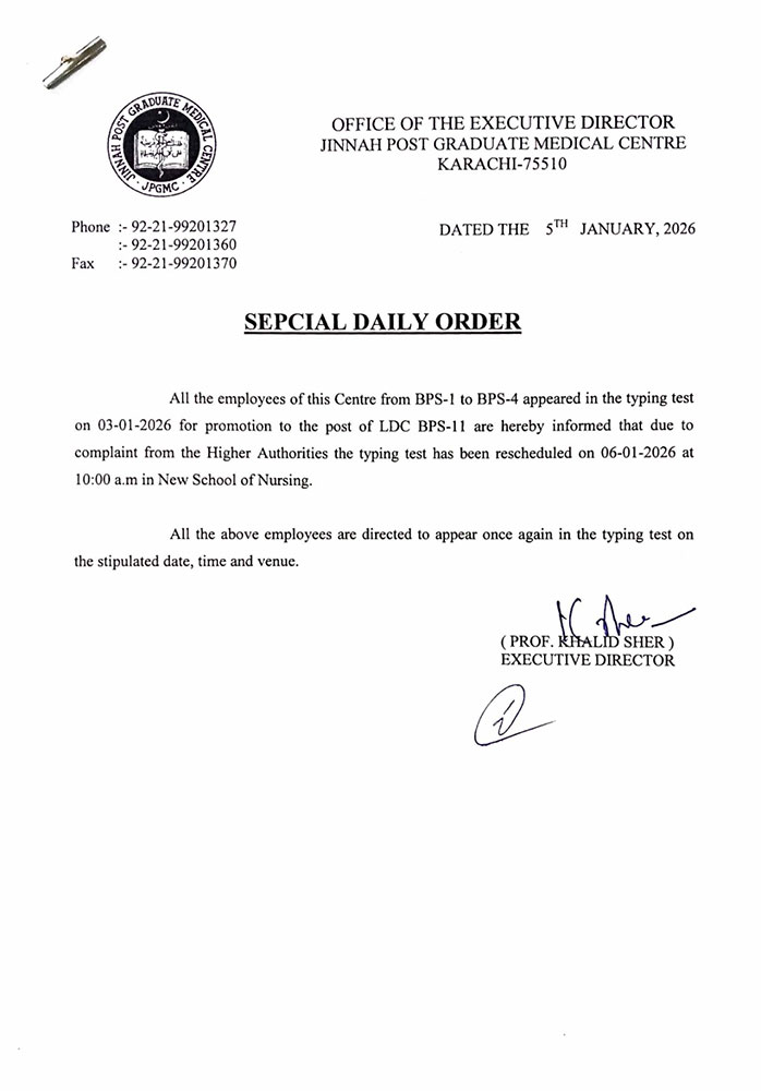 The JPMC administration has yet to issue a formal public statement addressing the allegations or clarifying how promotion-related tests and criteria will be aligned with the upcoming DPC meeting. However, the developments have placed the promotion process under close watch, with staff expecting that the committee’s decisions will reinforce merit, accountability, and institutional integrity at one of Sindh’s largest public-sector hospitals.