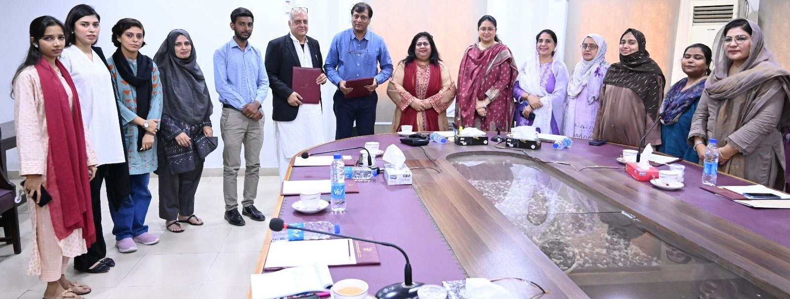 Prof. Dr. Harris Shoaib and Adnan Siddiquie formally signed the MoU. The ceremony was attended by EZShifa’s Operations and Business Management representative Muhammad Azam, Team Lead and Counselor Raheela Hasan, KU Department of Psychology Chairperson Prof. Dr. Farah Iqbal, Prof. Dr. Qudsia Tariq, Prof. Dr. Zi Asma Haneef Khan, Dr. Saima Masoom Ali, Dr. Anila Mukhtar, Dr. Bushra Khan, KU ORIC Director Dr. Syeda Hoor Ul Ain, and other ORIC team members.