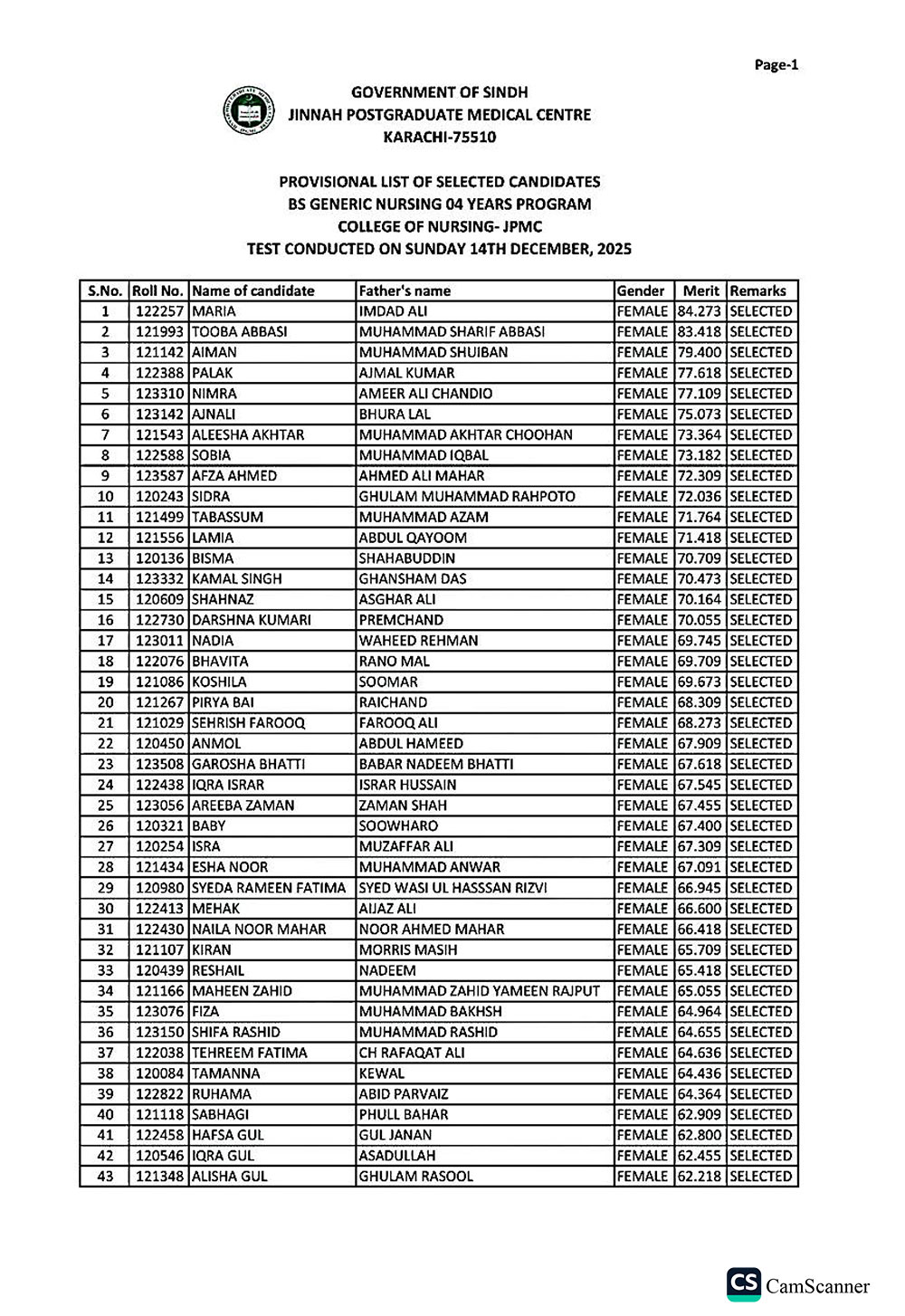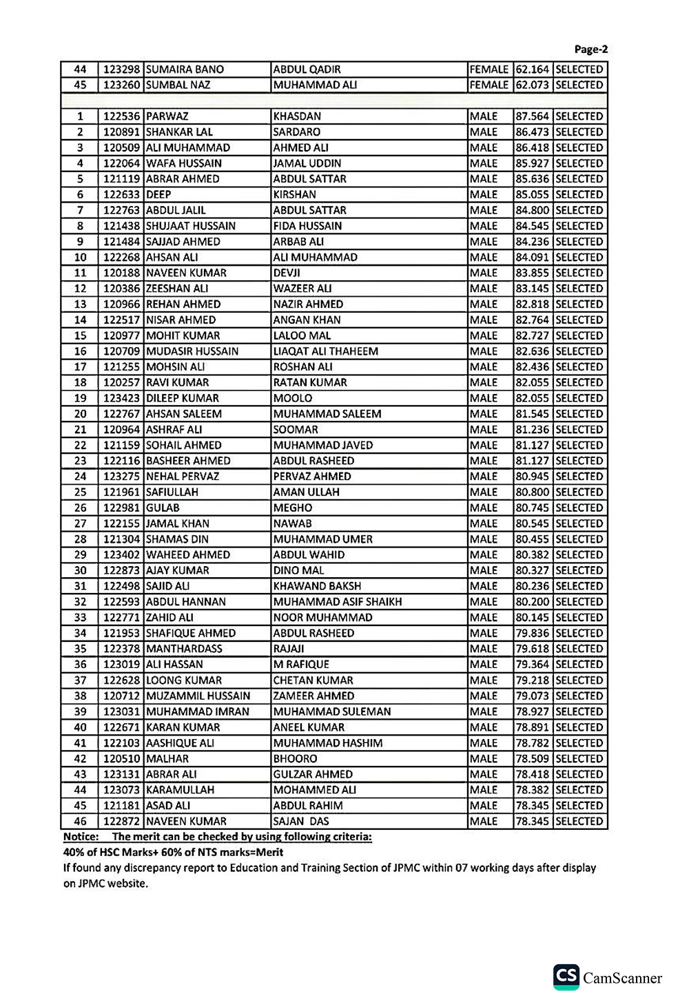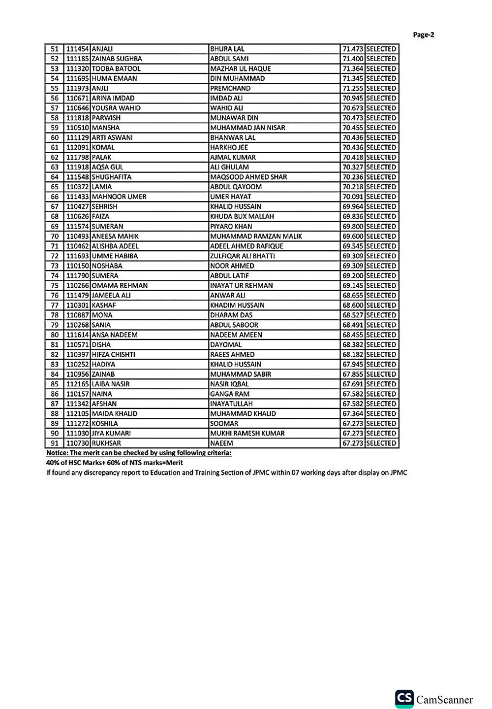 A spokesperson for JPMC, responding to Health Matters, stated that NTS shared the candidates’ list with JPMC, after which the selected list was placed on the JPMC website in accordance with the formula mentioned below each result. The spokesperson added that NTS was to display the same results on its website on the next working day.