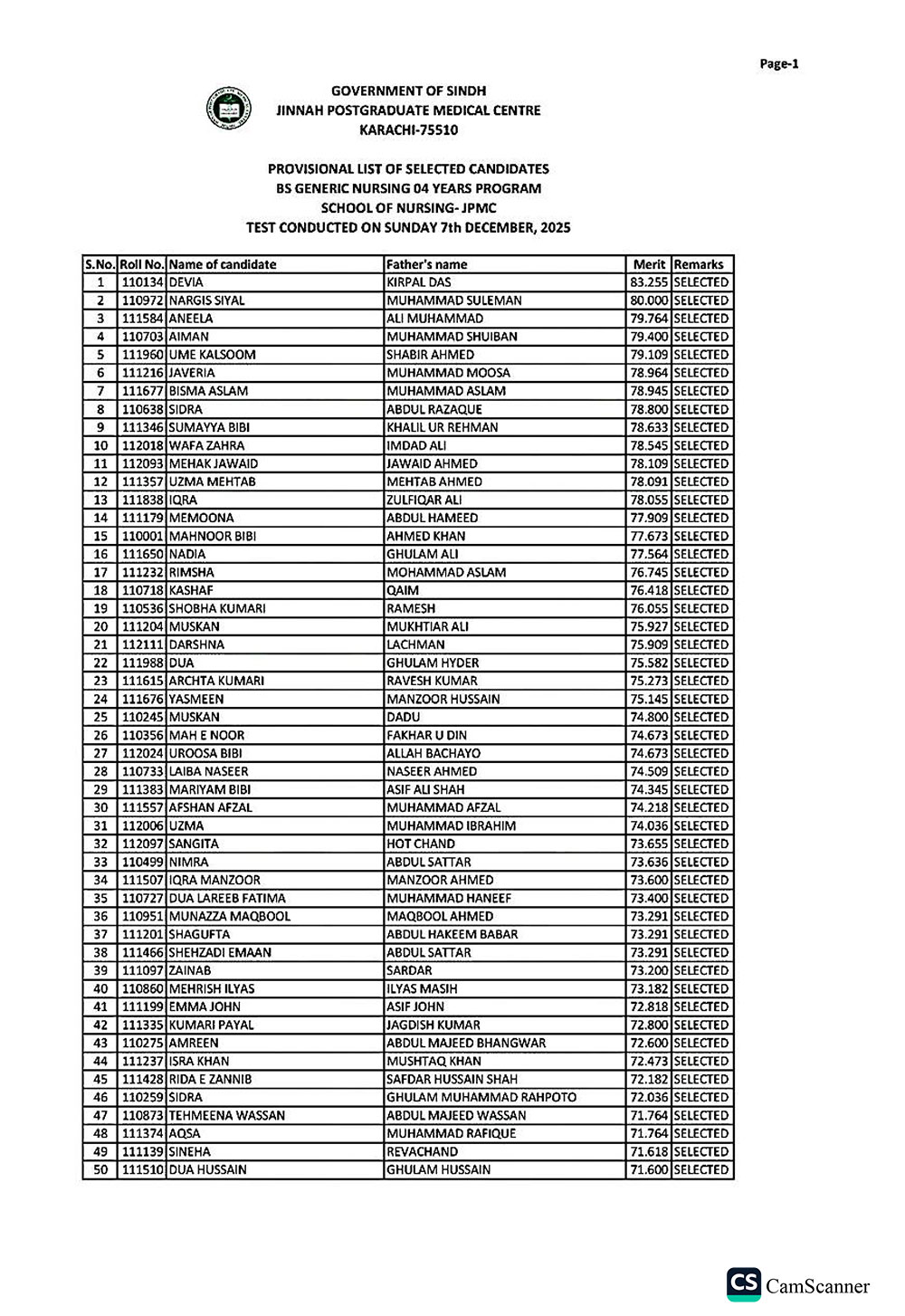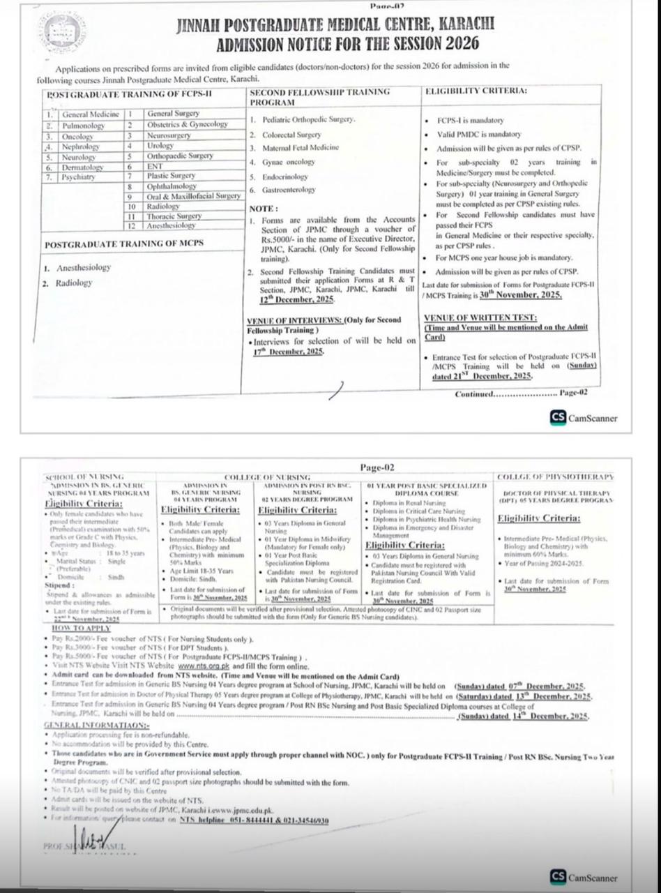 According to information obtained by Health Matters, the nursing admission test was conducted by NTS, however the results were not available on the NTS website until December 26 afternoon. During this period, JPMC administration confirmed that it had already received the candidates’ list from NTS and proceeded with admissions-related actions, including placing a selected list on the JPMC website.