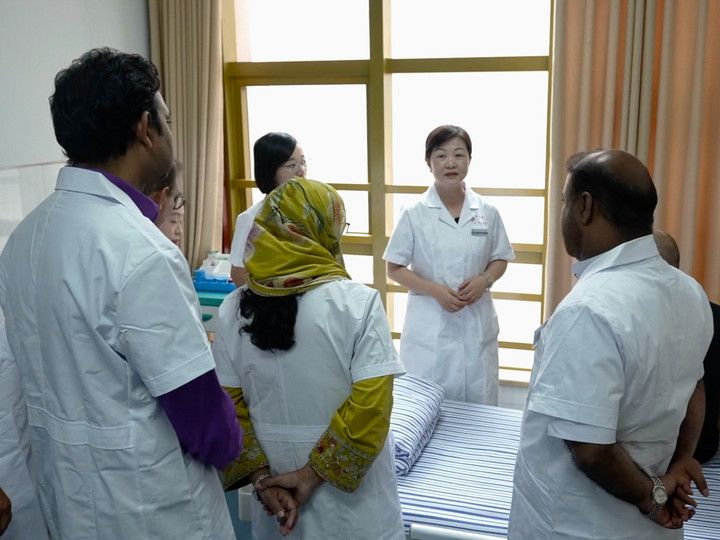 During the program, the trainees observed acupuncture, tuina (therapeutic massage), and rehabilitation sessions. In one demonstration, Dr. Luo Beidan performed acupuncture therapy, while the Pakistani participants observed the complete procedure.