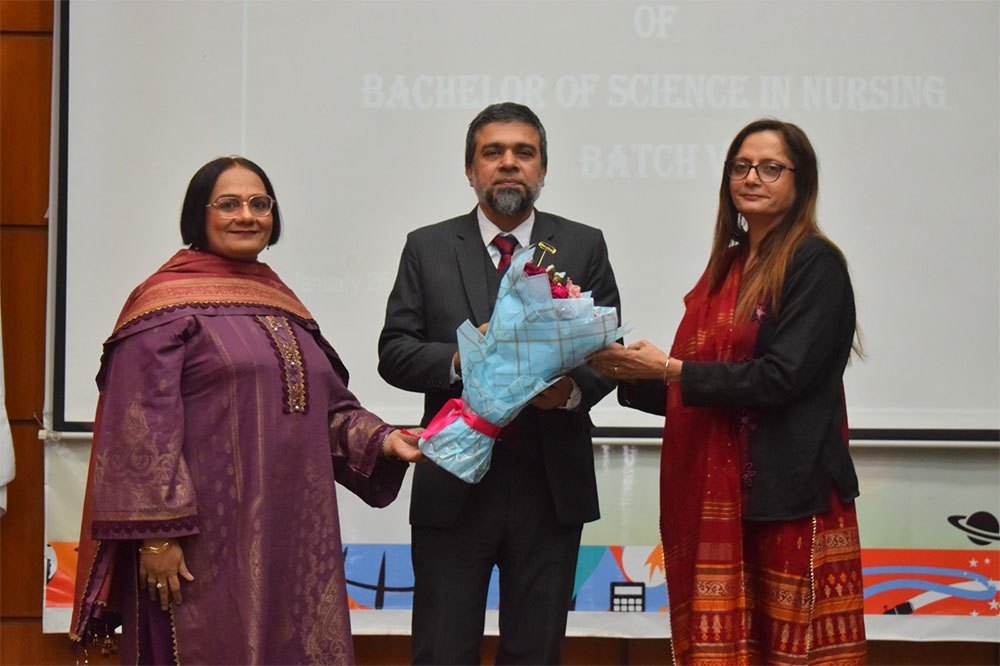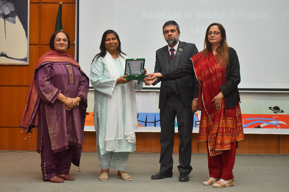 Ms. Rozina Virani, a Family Nurse Practitioner from the United States, attended the event as a special guest and delivered a session on “The Importance of Self-Care for Healthcare Professionals.” Her talk was well received, particularly by incoming students, as she highlighted the physical and emotional well-being of healthcare workers.