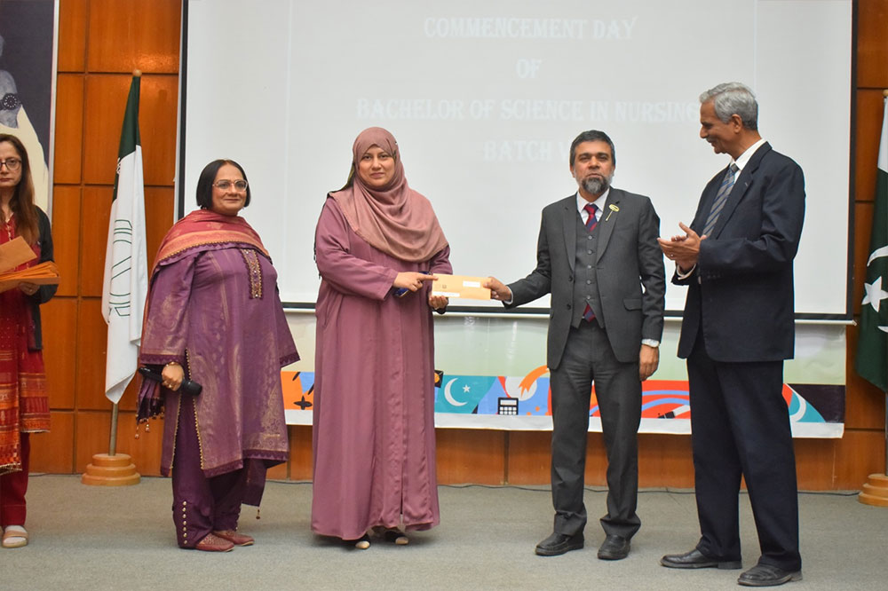 The ceremony began with recitation from the Holy Quran, followed by an address from Ms. Alia Nasir, Principal, RHCN. In her presentation, she highlighted the history, vision, and achievements of Rufayda Hamdard College of Nursing since its establishment. She emphasized the institution’s focus on quality education and professional development in nursing.