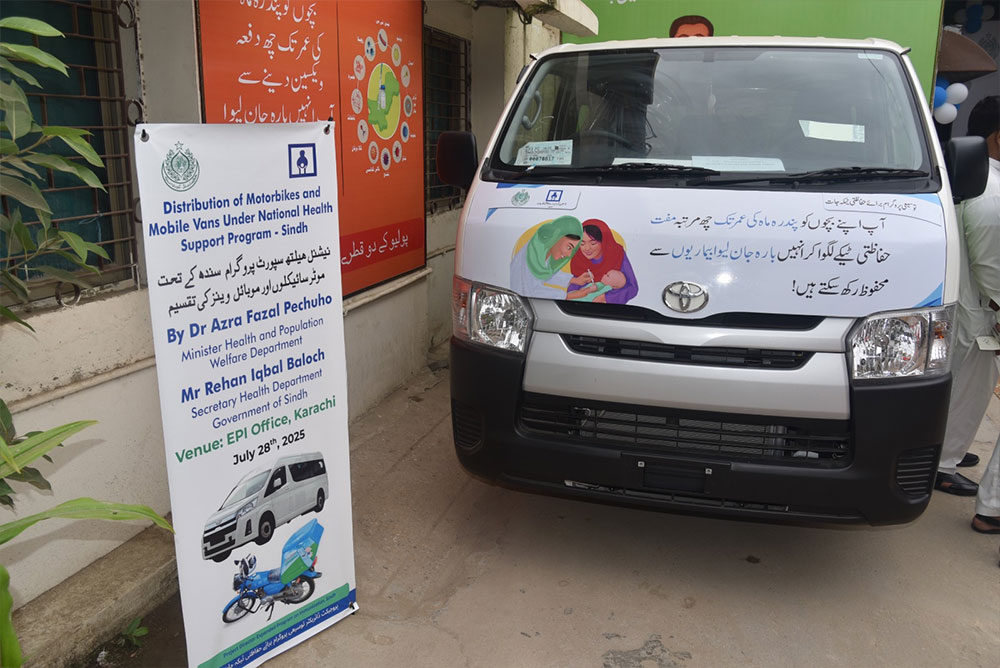 KARACHI: In a significant push to strengthen routine immunization efforts across Sindh, the Provincial Health Department, under the Expanded Programme on Immunization (EPI) and supported by the National Health Support Program (NHSP), held a high-profile distribution ceremony in Karachi. The initiative saw the handover of mobile vaccination vans and motorbikes to District Health Officers (DHOs) from across the province.